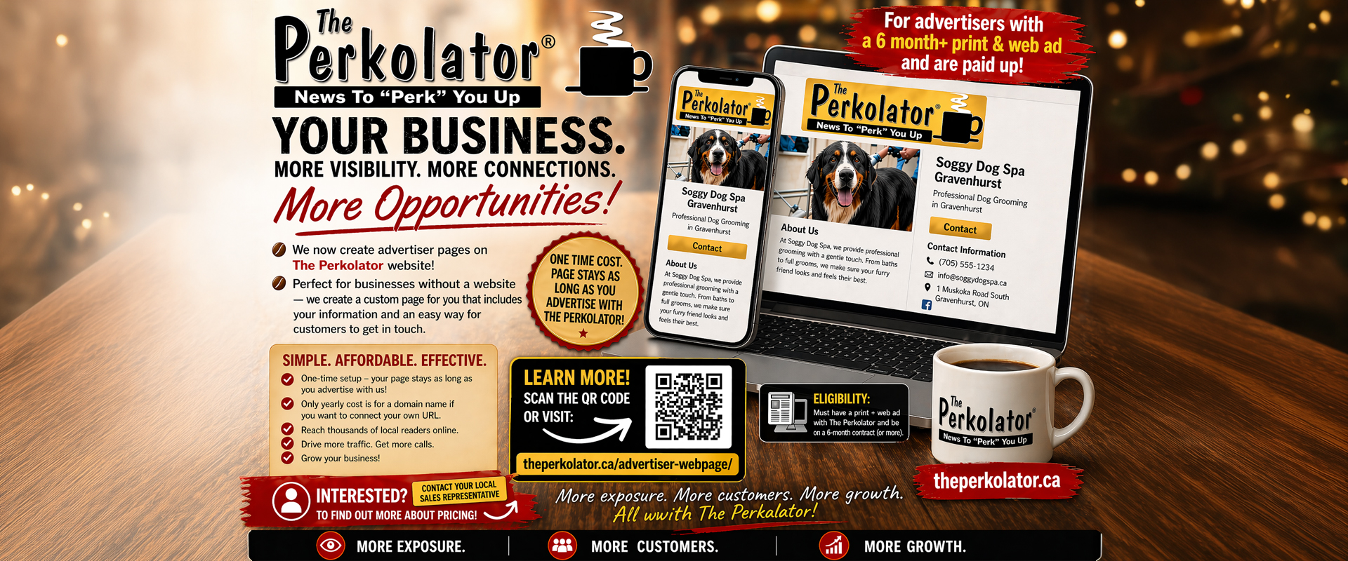 That’s why The Perkolator now offers custom advertiser webpages—giving you a professional online presence that works hand-in-hand with your print and web advertising.
